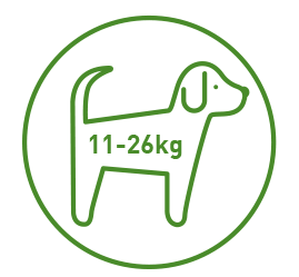 From the chart, refer to your dog's weight from the left column; the next column tells you the approximate % of the dog's body weight, followed by the actual size of the meal, whether feeding one or two meals per day.